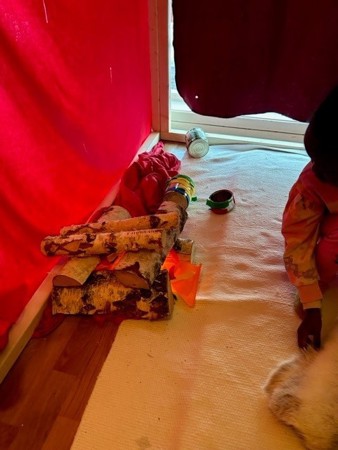 I løpet av januar og februar har barna i Skogkanten blitt kjent med ulike elementer i samisk kultur og språk. Det er formidlet historier fra det samiske folks kultur og vi har sett på bilder, små filmsnutter fra samisk kultur og vi bruker konkreter og samiske ord og tall. Barna har hørt på barnesanger på samisk og hørt på joik og forsøkt å oike på sangsamlinger. Fargene i det samiske flagget har preget formingsaktivitetene, rødt, gult, blått og grønt.