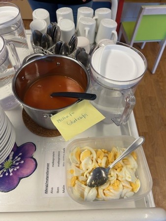 I barnehagen serverte vi tomatsuppe med egg og nanbrød, som er en rett de også serverer i Malawi. Dette var populært blant barna, og maten gikk med:)
